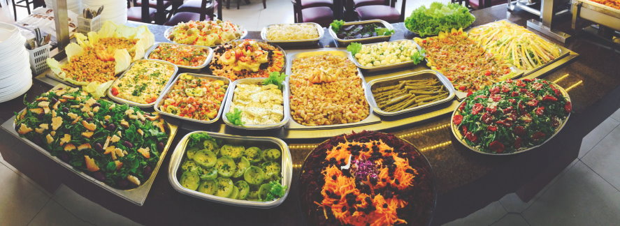 peixes, aves, saladas e também pratos à La Carte com o melhor tempero da